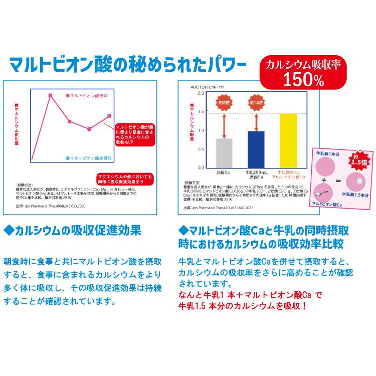 本品にはマルトビオン酸Caとプラズマ乳酸菌(L. lactis strain Plasma)が含まれます。マルトビオン酸Caは加齢に伴い低下する骨密度の維持に役立つことが報告されています。プラズマ乳酸菌はpDC(プラズマサイトイド樹状細胞)に働きかけ、健康な人の免疫機能の維持に役立つことが報告されています。