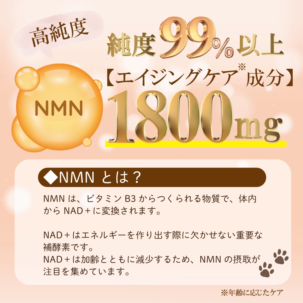 健やかな未来をサポートするエイジングケア*成分「NMN」が1袋に1,800mg!(純度99.9%以上の国内製造NMNを使用)