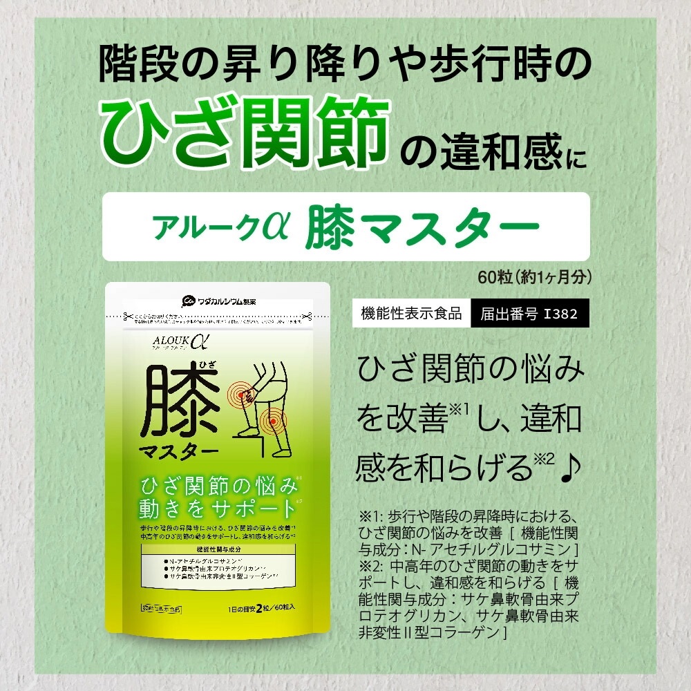 『アルークα 膝マスター』は、ずっと自分の足で歩いて、人生を楽しみたいあなたを応援します。